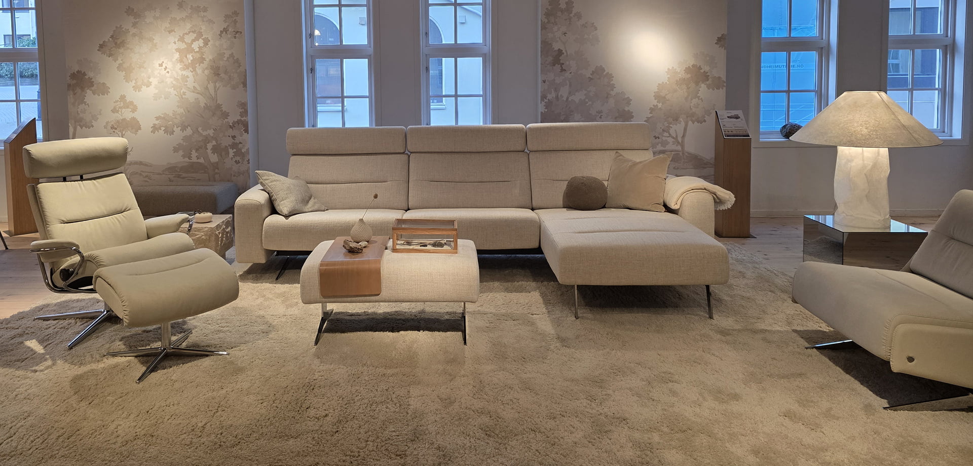Eidsvikbua once again houses first-class products for long-distance travel. Each floor has about 575 m2 of exhibition space. Ekornes has an exhibition on 4 floors, a dining room on the 5th floor, a photo studio and a meeting room.